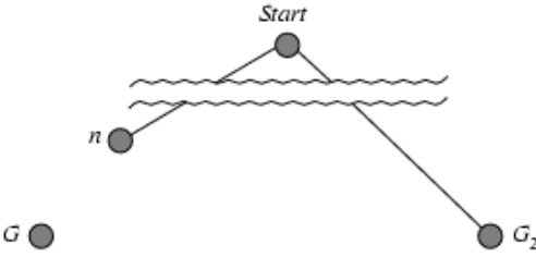 假设 是一个最优解, 是一个次优解,并且此时 和 都在边缘队列(fringe)中,其中 是从起点到 的路径中的一个节点。