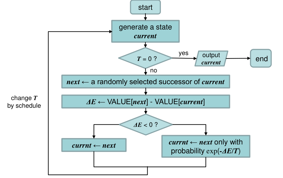 模拟退火,并不一定是每一步都向更优的结果走,而是有一定概率会选择比较差的结果。