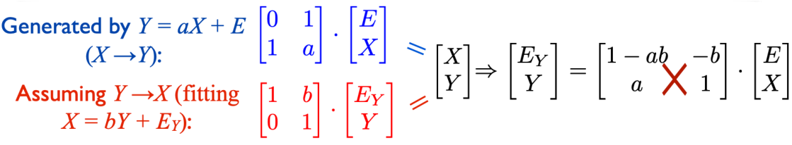 那么此时需要思考当只有 和 的数据时,如何区分 之间的因果关系。因为 同样也可能对应 。现在对 是否为高斯分布进行考虑: