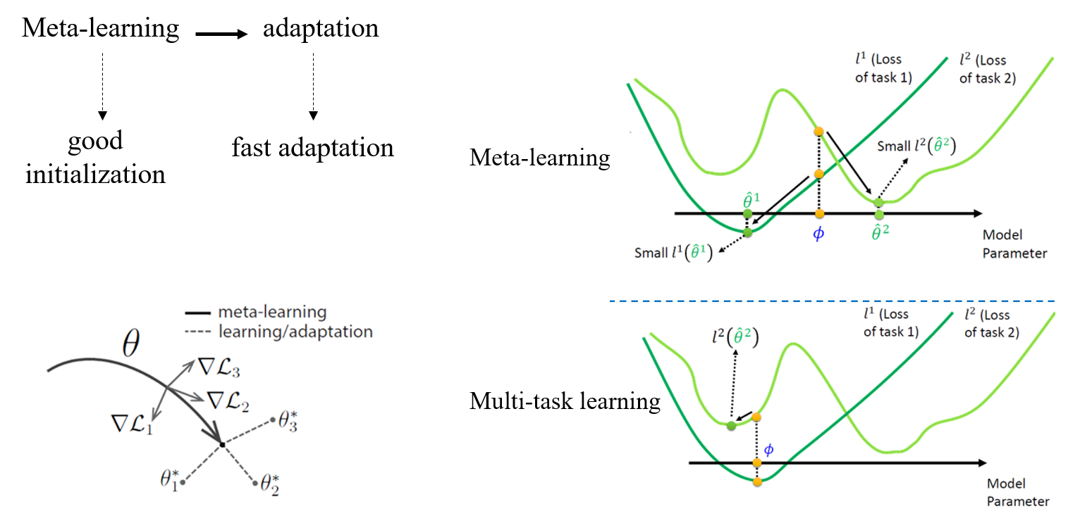 下图展示了 MAML 在模型初始化参数优化方面的作用