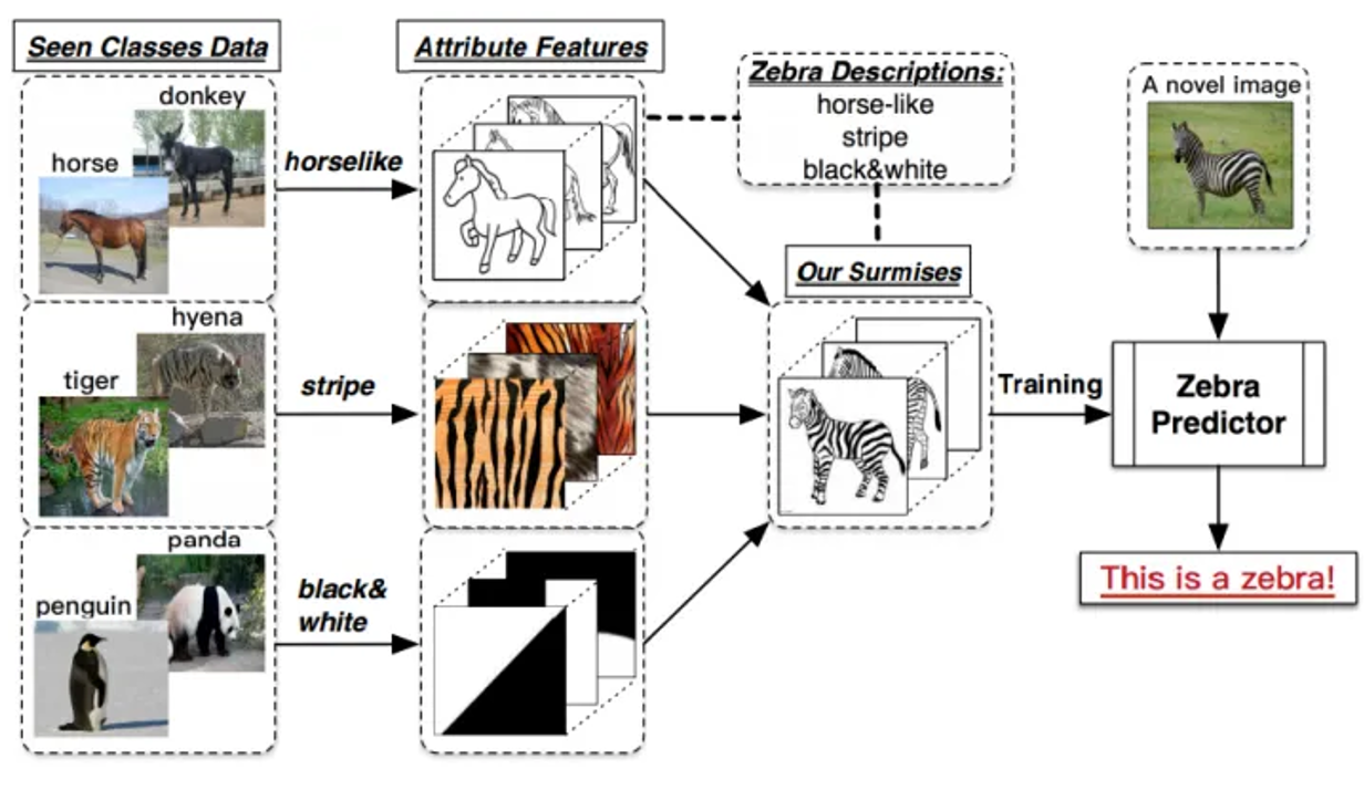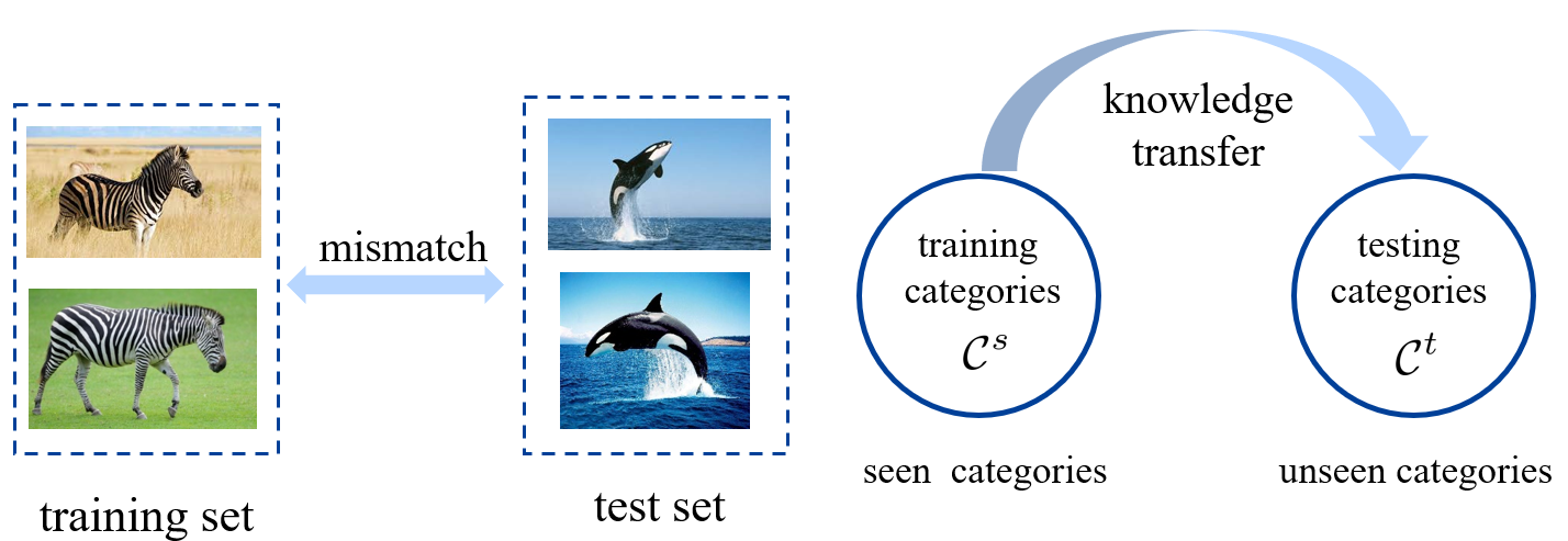 zero-shot learning 的核心是知识迁移。同时在 zero-shot learning 中,训练集的样本种类称为 seen categories,测试集中的种类称为 unseen categories。
