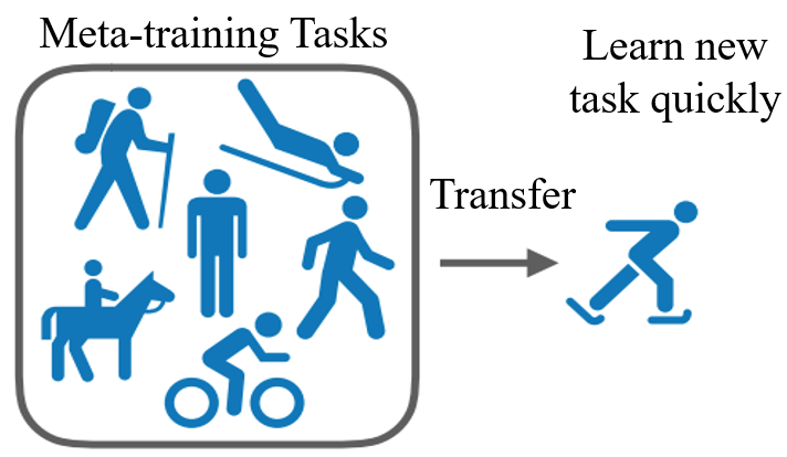 由于 meta-learning 比 learning 更高一层,所以引入 meta-training 和 meta-testing。在 meta-training 阶段,会学习很多 task;而在 meta-testing 阶段,则会有新的 task,希望将原来学习的经验迁移到新的 task 上。比如之前学过滑雪,那么在学习滑冰这个新的任务时,应该能学的更快。
