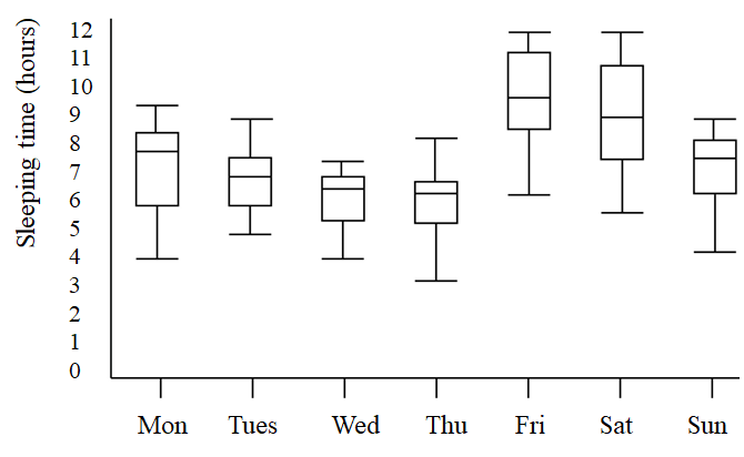 比如说下图就可以直观地展示一周中每天学生地睡眠时间