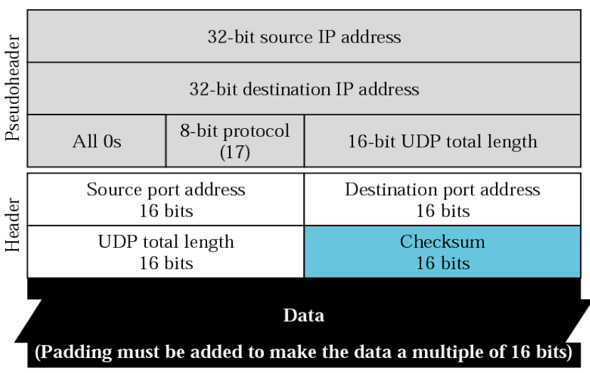计算UDP校验和时,要包括伪头、UDP头和数据三个部分
